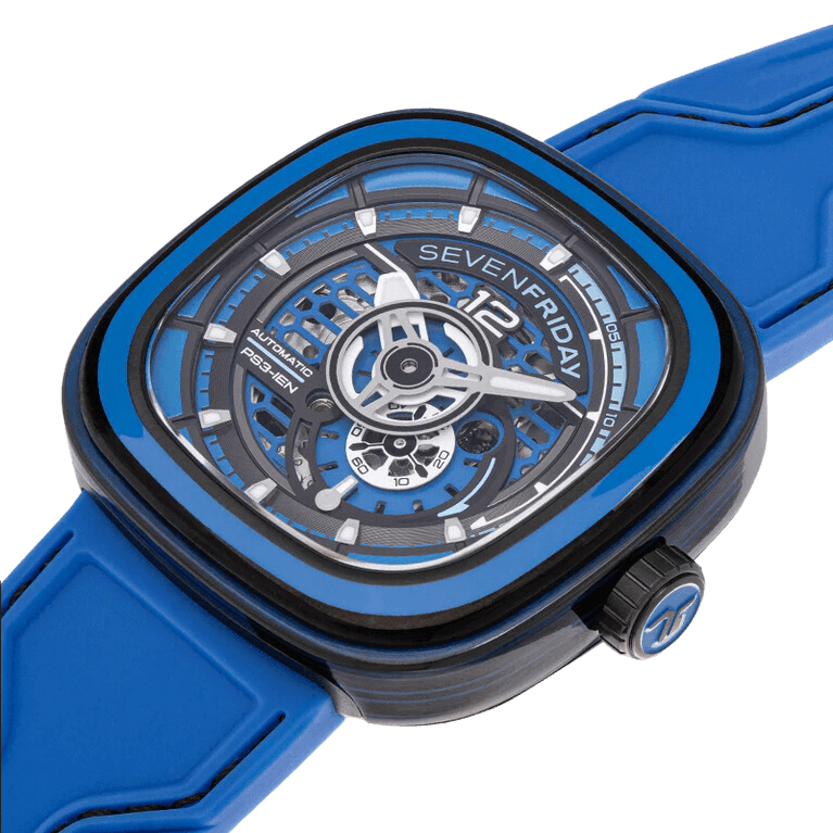 10 years of colors! The new PS-Colored Carbon offers a vibrant choice of three striking colors: PS3/03 in orange, PS3/04 in blue, and PS3/05 in green! Nestled in the more technical PS range, the watches’ animation ring is made of a special combination of carbon fibre and coloured resin, the latter matching the dial, strap colour and the Berlac filled bezel. It also includes a service warranty extension and an access to the world of UPO7F, a collective of like-minded individuals who seize every day as if it’s a Friday.